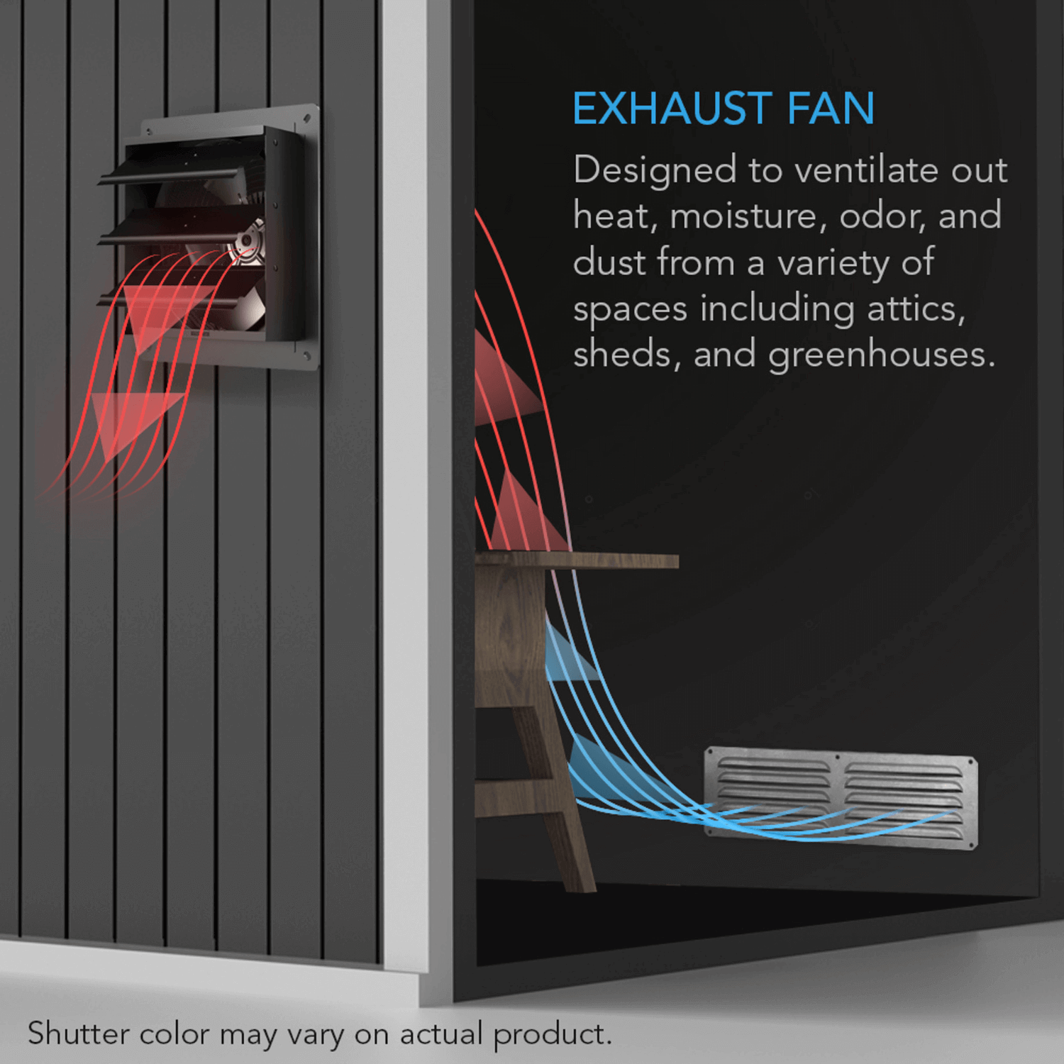 It features steel shutters that are weather and corrosion-resistant, closing automatically when not in use to prevent dust, debris, and moisture from entering your space. The blades and impeller are constructed of lightweight aluminum, weight-balanced to reduce vibrations. The innovative EC motor that is electronically controlled using PWM (Pulse Width Modulation) maximizes airflow while reducing noise and power consumption. Its fully enclosed motor is permanently lubricated and houses dual-ball bearings rated at 67,000 hours. The unit is IP-44 rated, proving highly resistant to dust and liquids and performs well even in harsh environments.