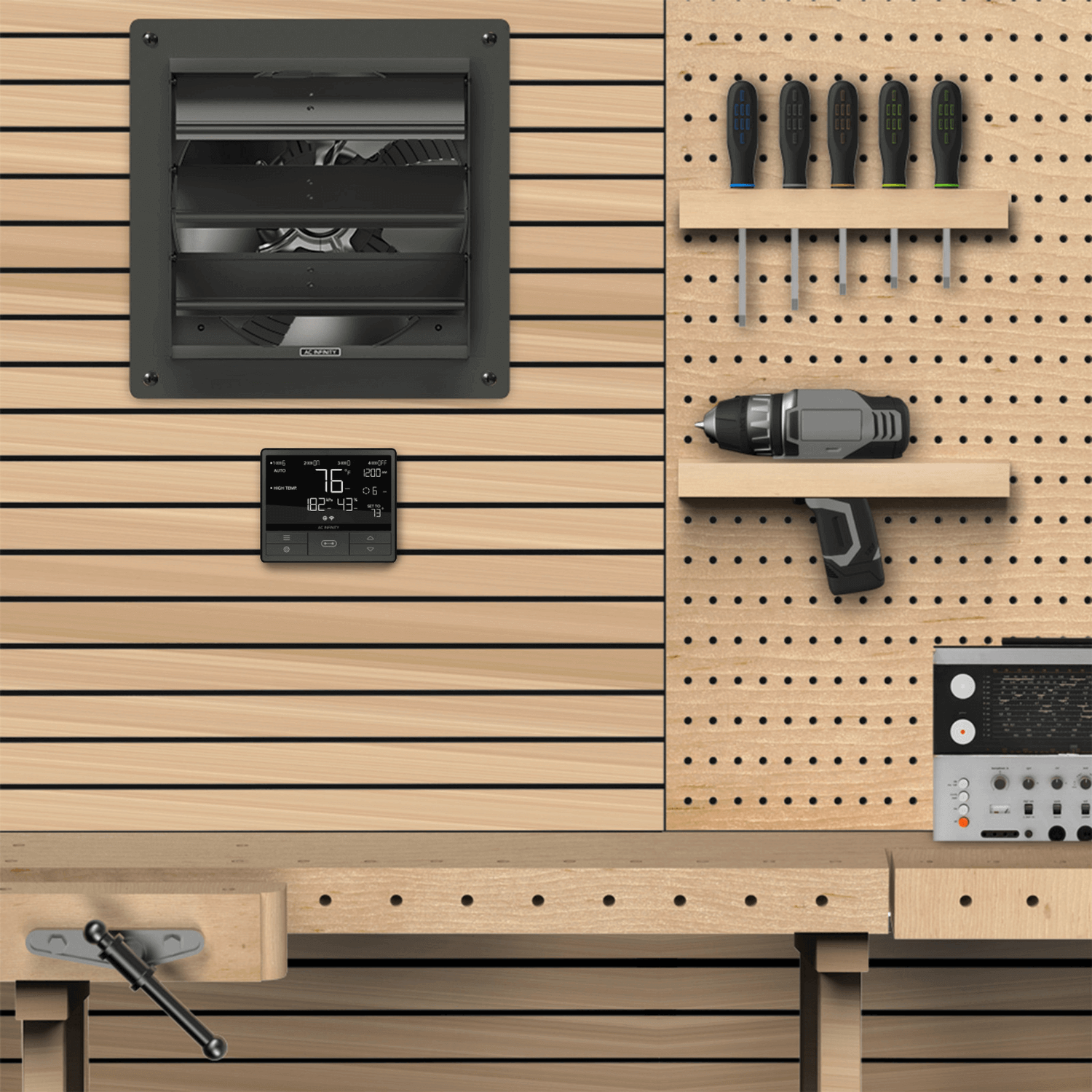 The Controller 69 Pro is integrated with smart programming that goes beyond basic temperature, humidity, and VPD triggers by allowing you to set dynamic fan speeds responsive to these changes. Also, it allows you to set a minimum speed at which the fan will constantly run and would only increase when triggered. Its other features such as timers, cycle, and schedule modes provide unique on-demand activation for various uses. Furthermore, it allows for secure connection to the AC Infinity app via WiFi granting access to automation abilities from any location throughout the day. You can remotely access your fan, unlock advanced programs, set notifications, view historical climate charts, and export relevant climate data. This controller can also interconnect between AIRLIFT Series shutter fans, CLOUDLINE Series inline fans, and AIRTITAN Series crawlspace fans.