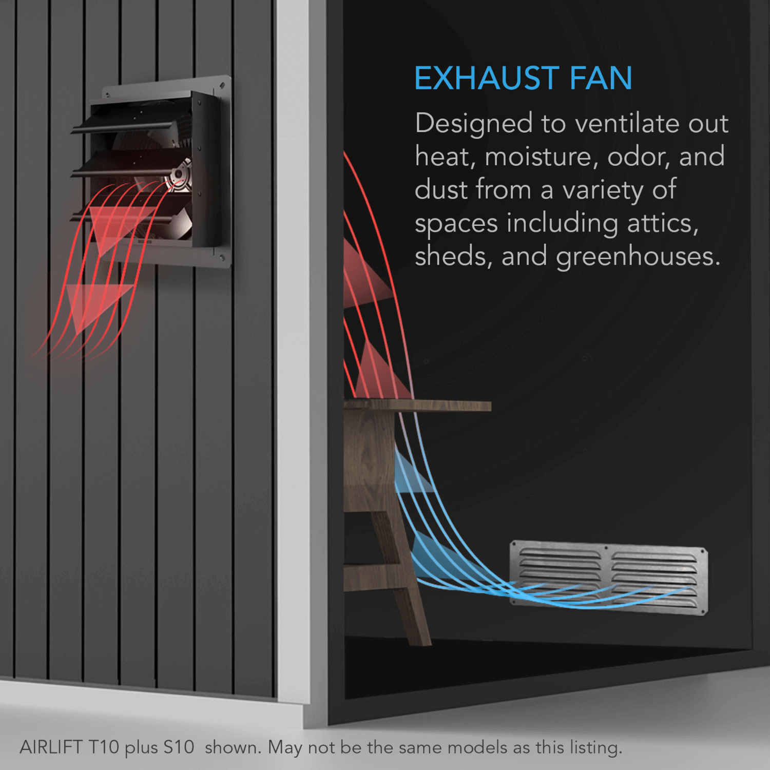 Enhance your workspace's climate with this exhaust fan designed to regulate heat, moisture, and odor levels. Installation of this energy-efficient fan, run by a precise and PWM-controlled EC motor, will improve comfort in warehouses, greenhouses garages, and workshops. Advanced UIS controllers support not only fan speed but also climate and time-based programming. Its heavy-duty design incorporates aluminum fan blades, steel wire guards, and lightweight steel shutters. This product belongs to the UIS™ platform of smart controllers and grow devices, all designed to work in harmony to create optimum environments.