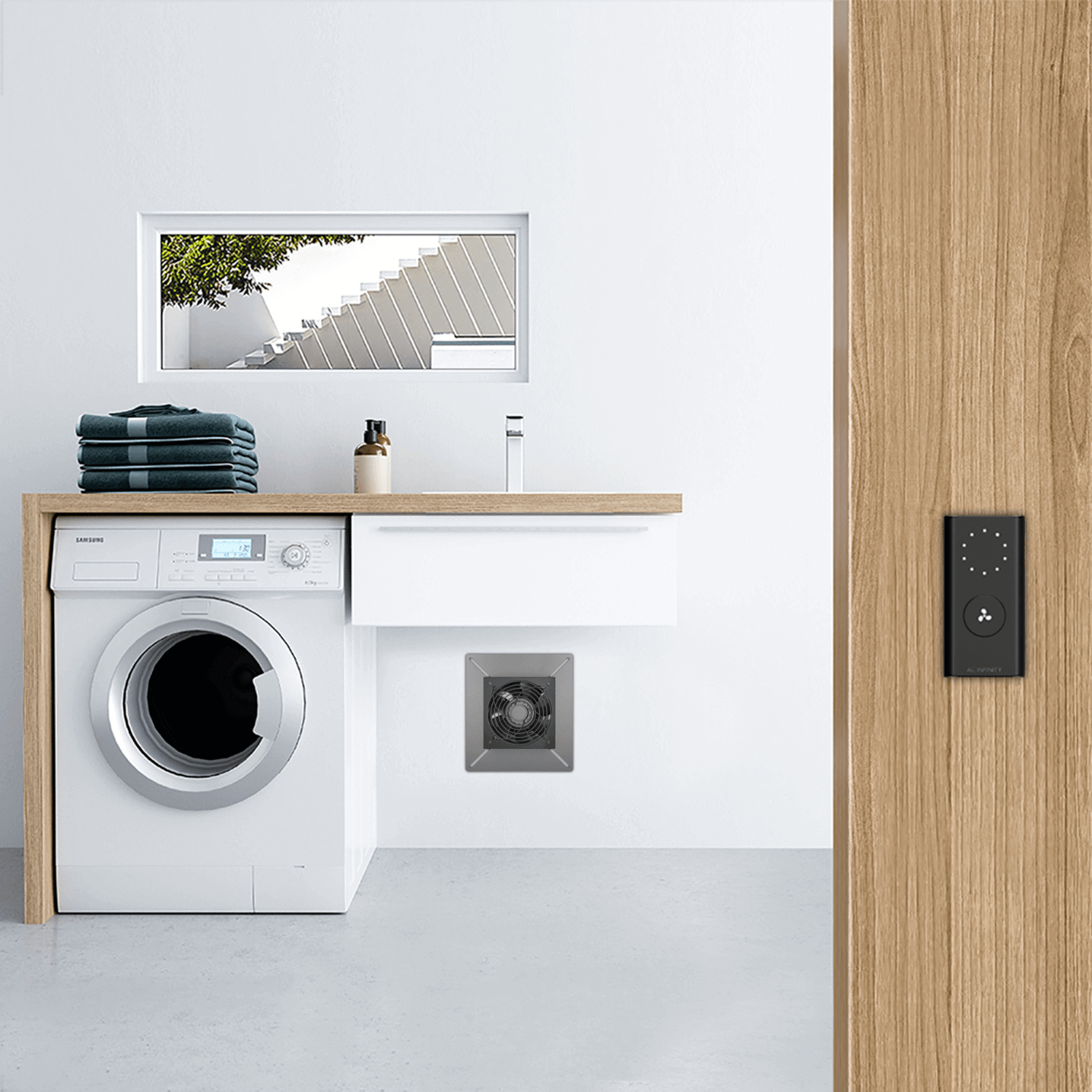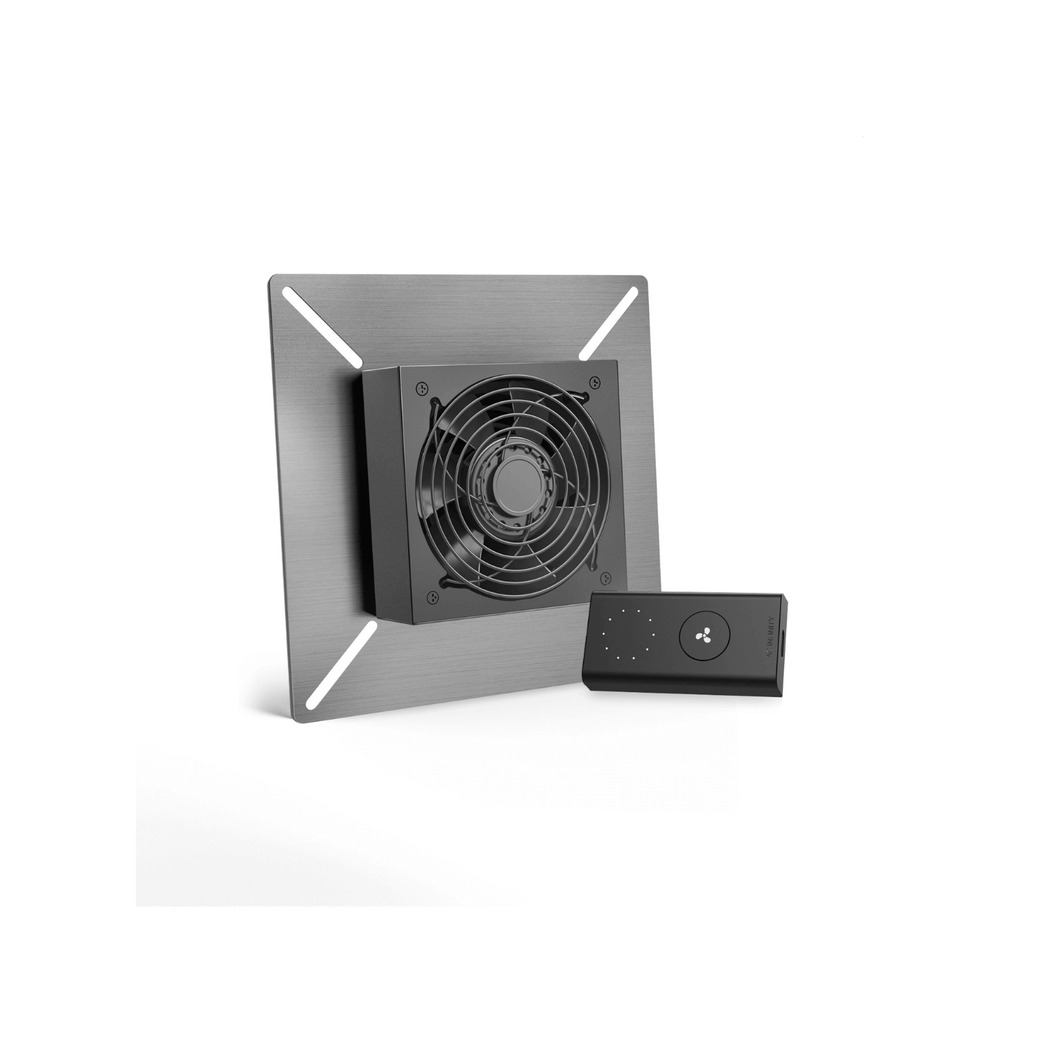 A high-airflow ventilator fan designed to control the temperature and humidity levels of your crawl space, basement, attic, and garage. This system includes a 120mm PWM-controlled fan for maximum efficiency in temperature regulation and reduction of noise and power levels. The fan is housed within a stainless steel frame, and is IP-55 rated against liquid and dust entry. The product includes a corded speed controller with 10 fan speeds and is part of the UIS™ platform of devices and smart controllers, designed for optimal environmental control.