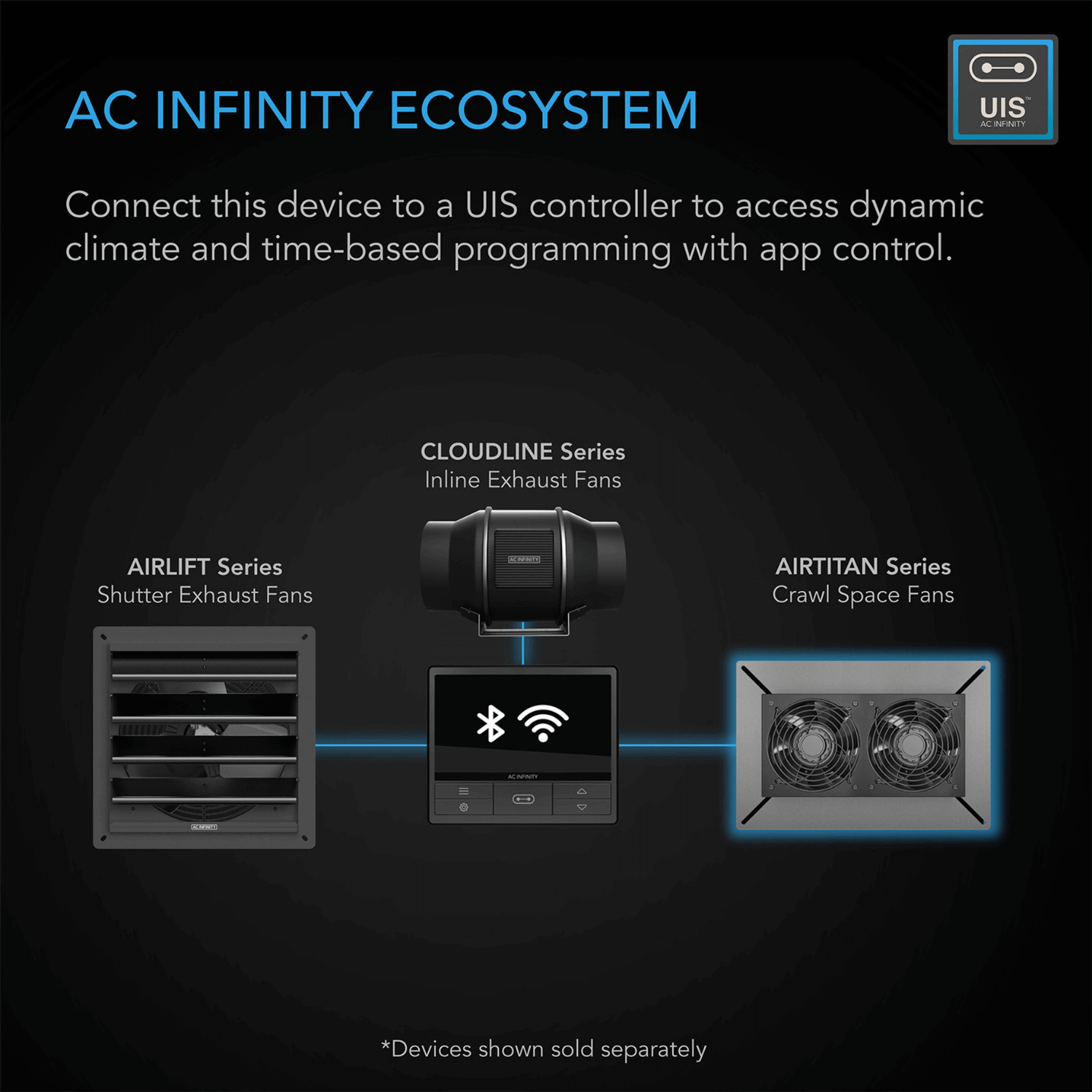 AC Infinity AIRTITAN S7, Crawlspace Fan with Speed Controller, 12-Inch