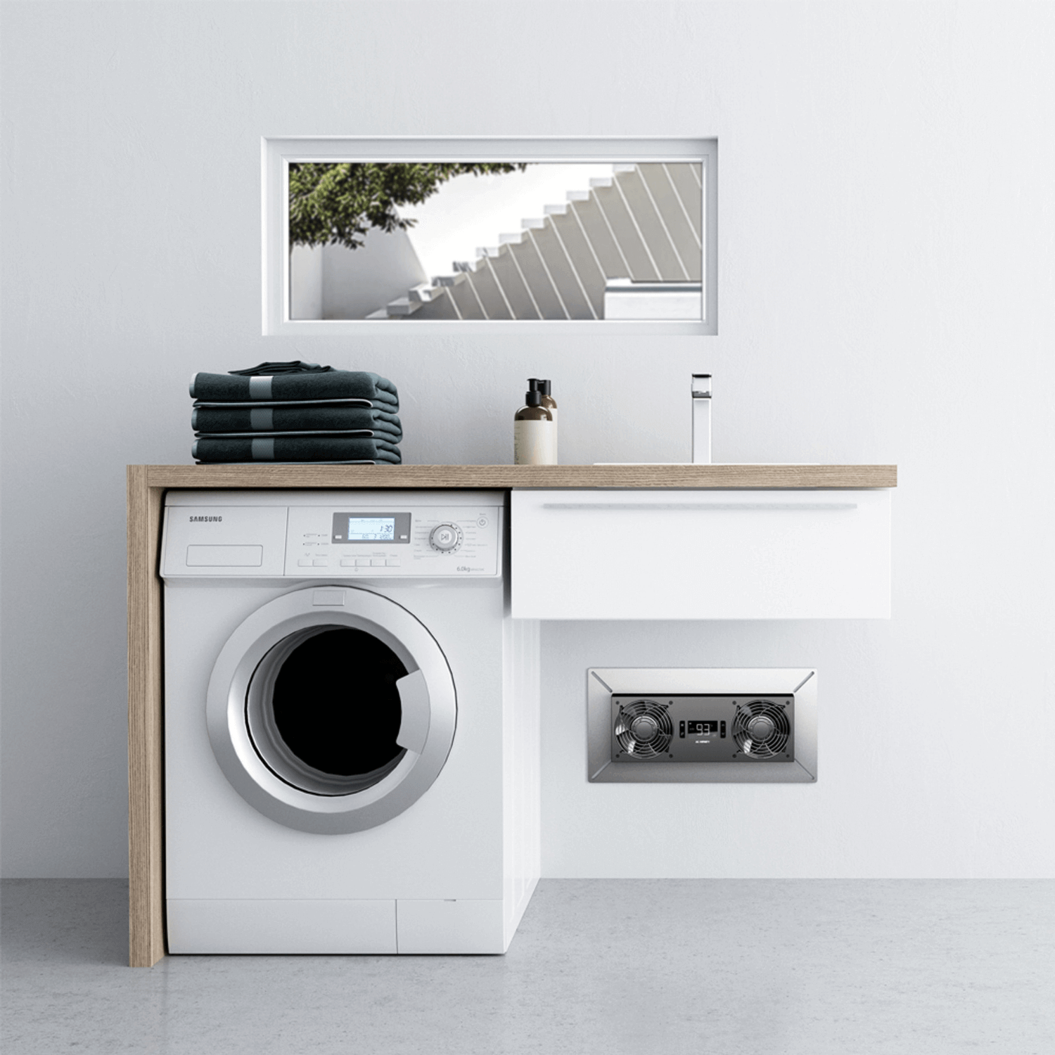 This fan system is designed to provide ventilation and moisture control for crawl spaces and basements. It helps in reducing humidity by creating exhaust airflow to expel foul odors and stale air from your home.