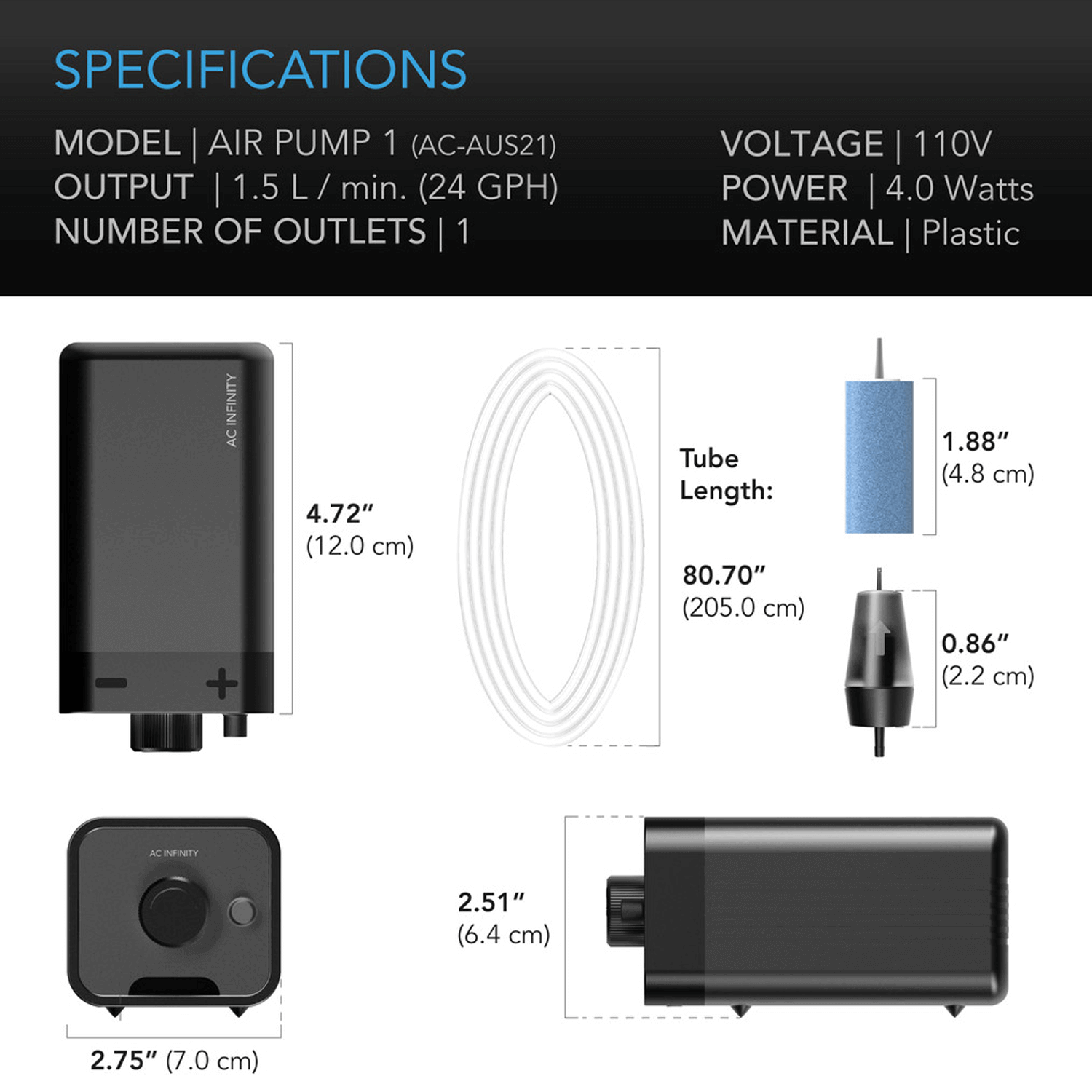 AC Infinity Hydroponics Air Pump, One-Outlet Pumping Kit, 24 GPH (1.5 L/M)