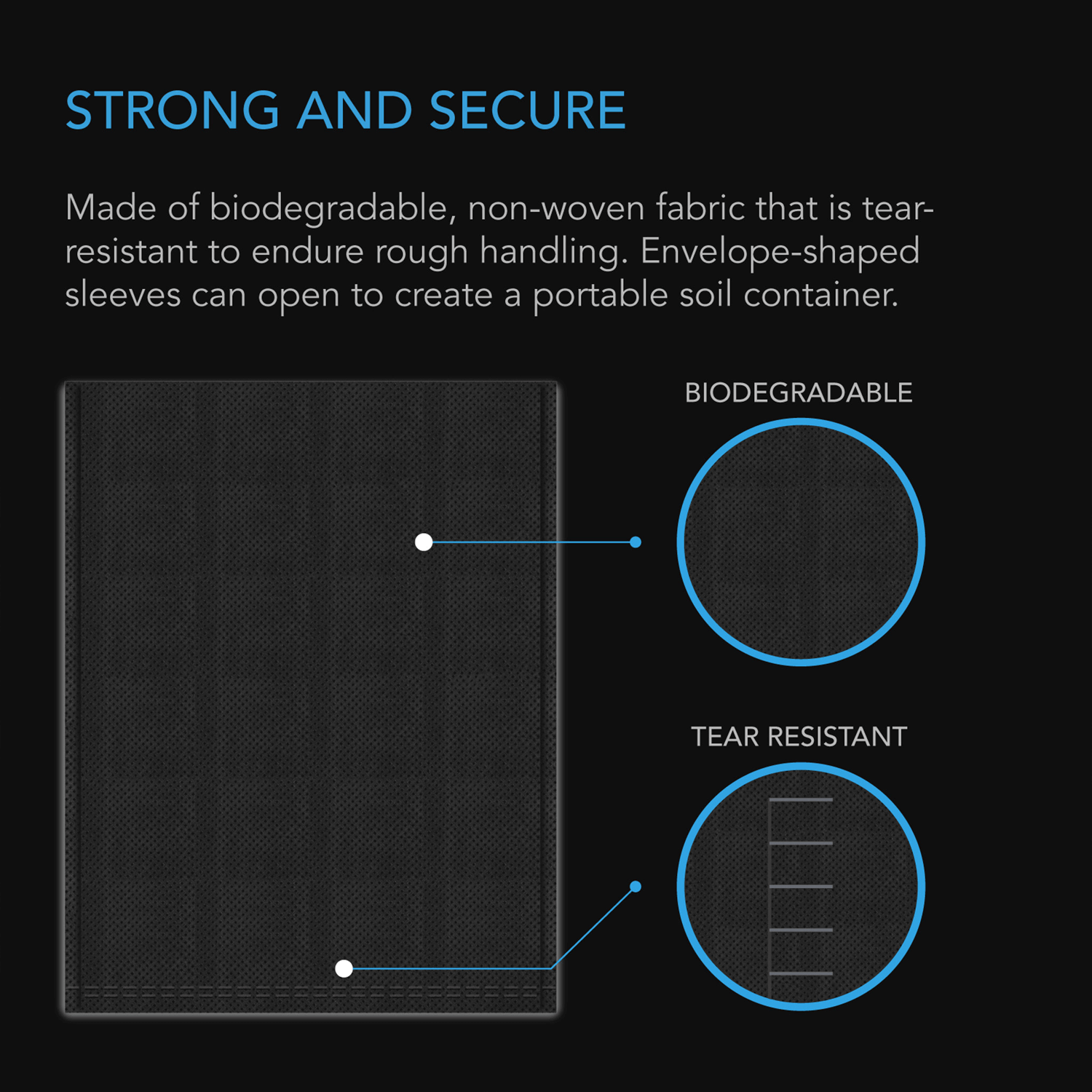 The sleeves enable quick and easy transplanting into larger containers without the need to remove the seedling bag. Their permeable surface allows for root penetration and moisture pass-through, helping to prevent overwatering of your plants.