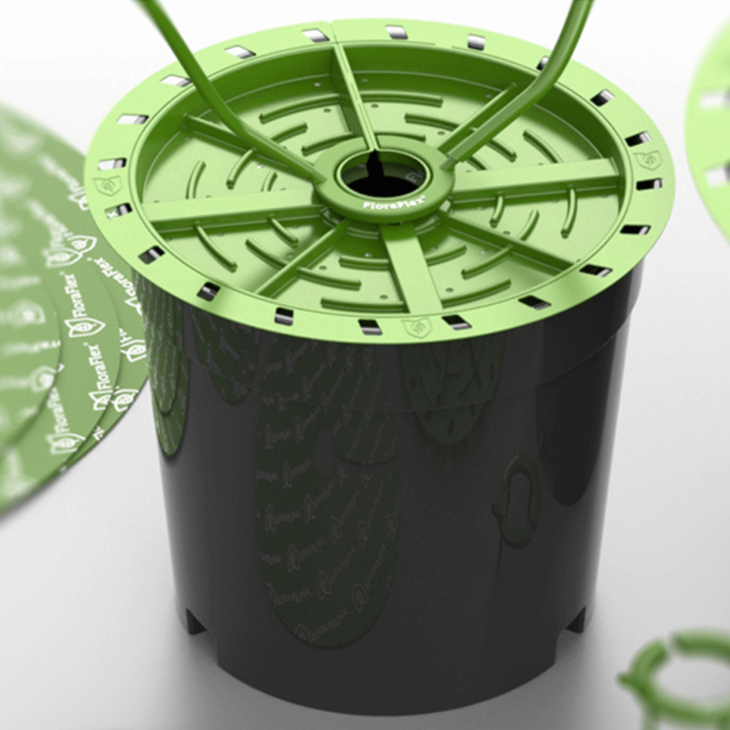 The FloraFlex Matrix System is a groundbreaking, patent-pending, top-feeding wicking system that offers a uniform method for delivering water and nutrients to your potted plants. This system can accommodate pots with diameters ranging from 7.5 inches to 18 inches.
