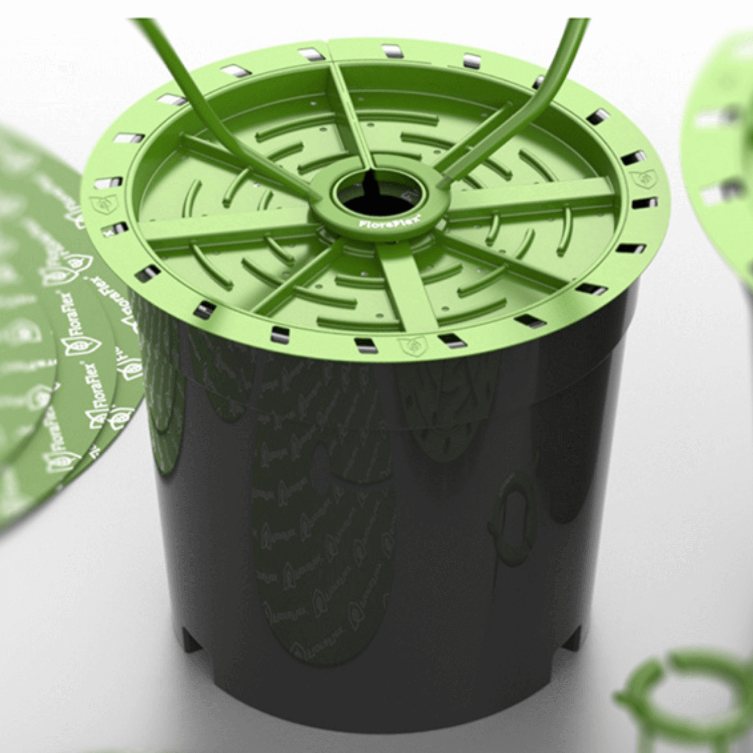 This is a one-of-a-kind, patent pending, Top Feeding Wicking System that delivers water and nutrients to your potted plants in the most uniform way possible. It can accommodate pots with diameters ranging between 7.5 inches to 18 inches, eliminating the need for multiple feeding systems.