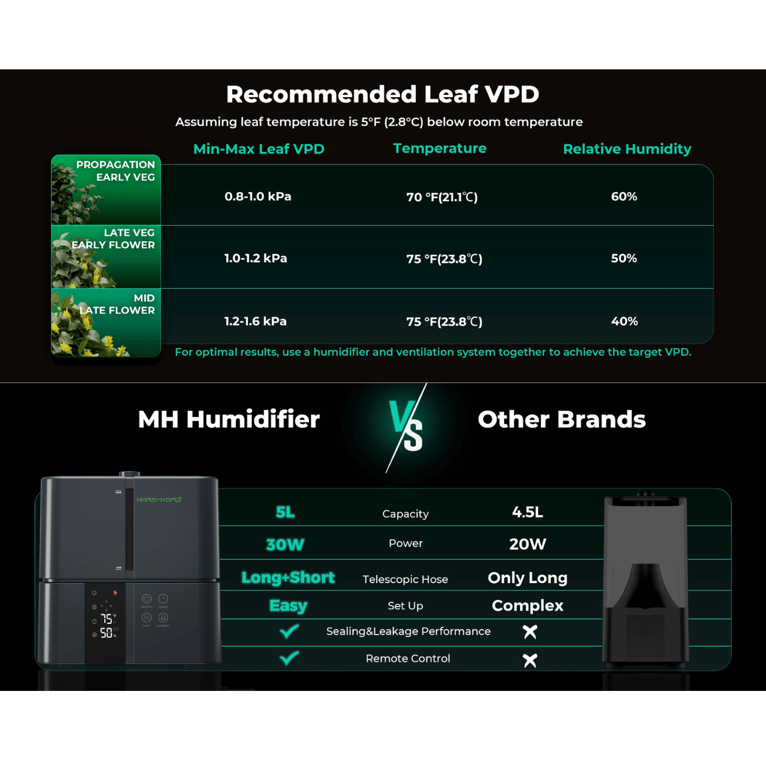 The Mars Hydro 5L Plant Humidifier is an advanced solution for ensuring a perfect growing environment. With adjustable mist levels, constant humidity regulation, and convenient remote operation, it helps in maintaining consistent moisture levels. It can be effectively used in a greenhouse, a grow tent of size 5x5 and below, or any indoor space.