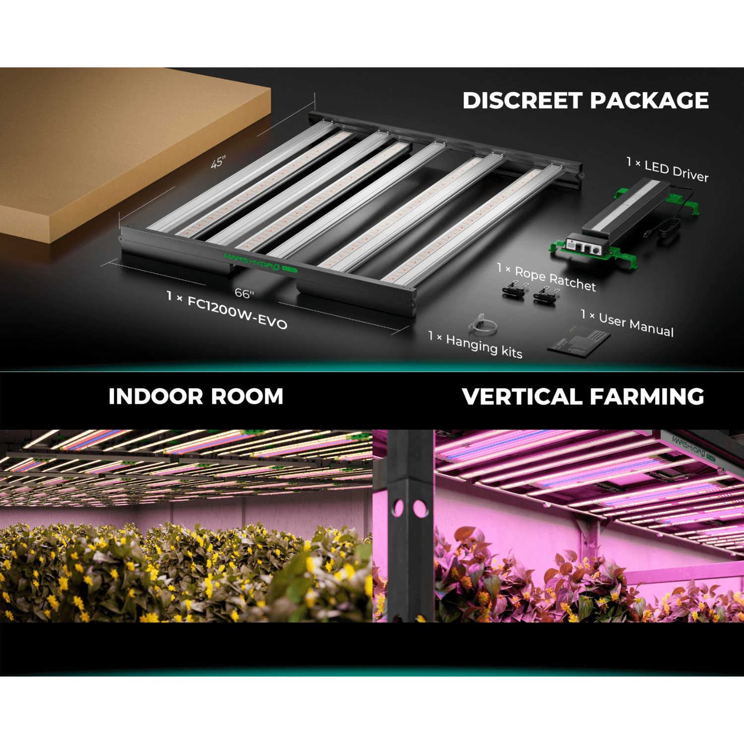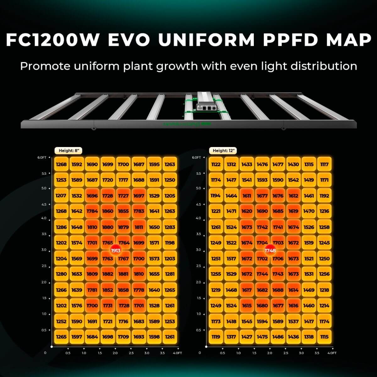 The 2024 New Version FC 1200W EVO provides core cultivation coverage for an area of 4x6 ft. This wide coverage ensures optimal light distribution for your plants, enhancing their growth and productivity.