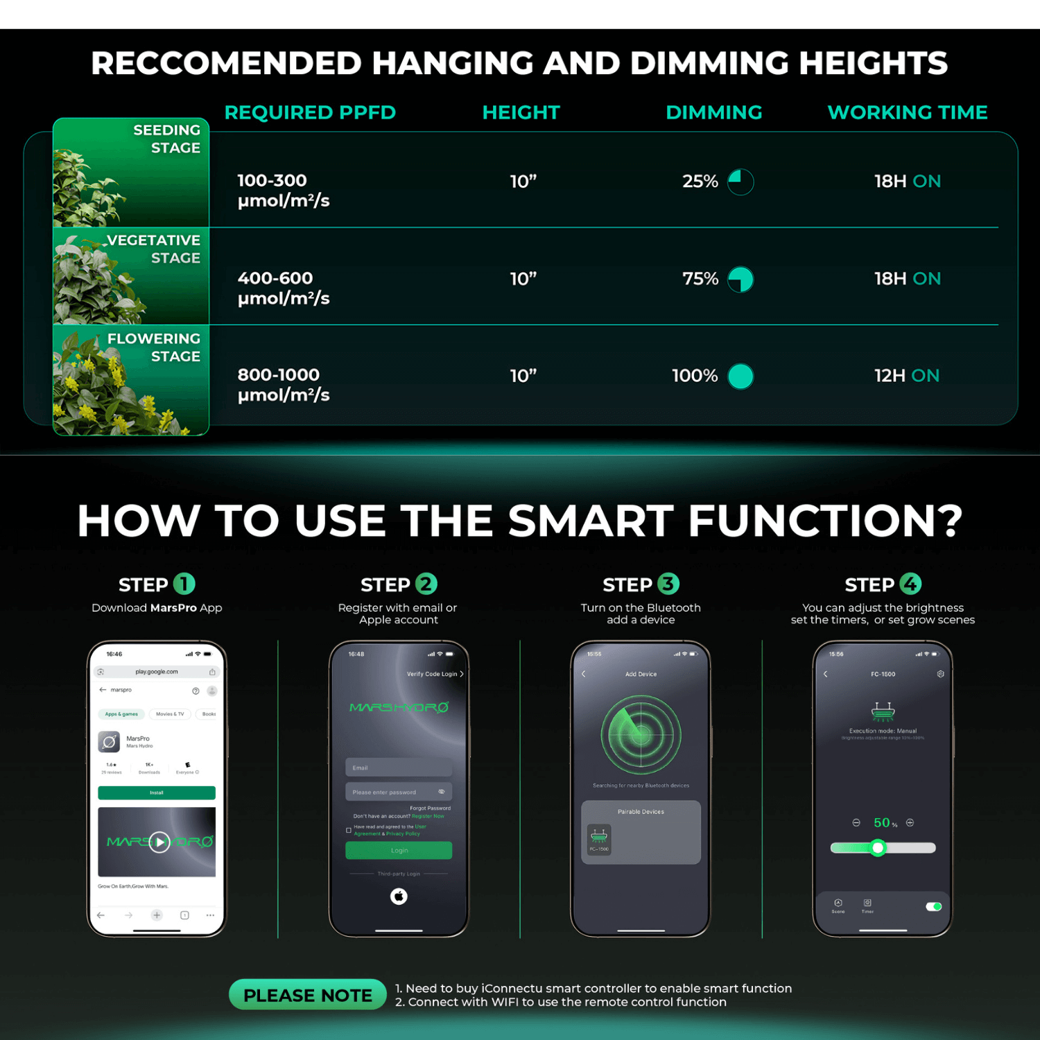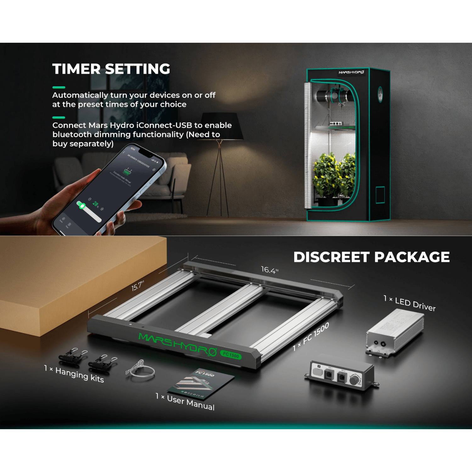 Mars Hydro FC1500-EVO 150W Smart Grow System Samsung LM301H LED Grow Light