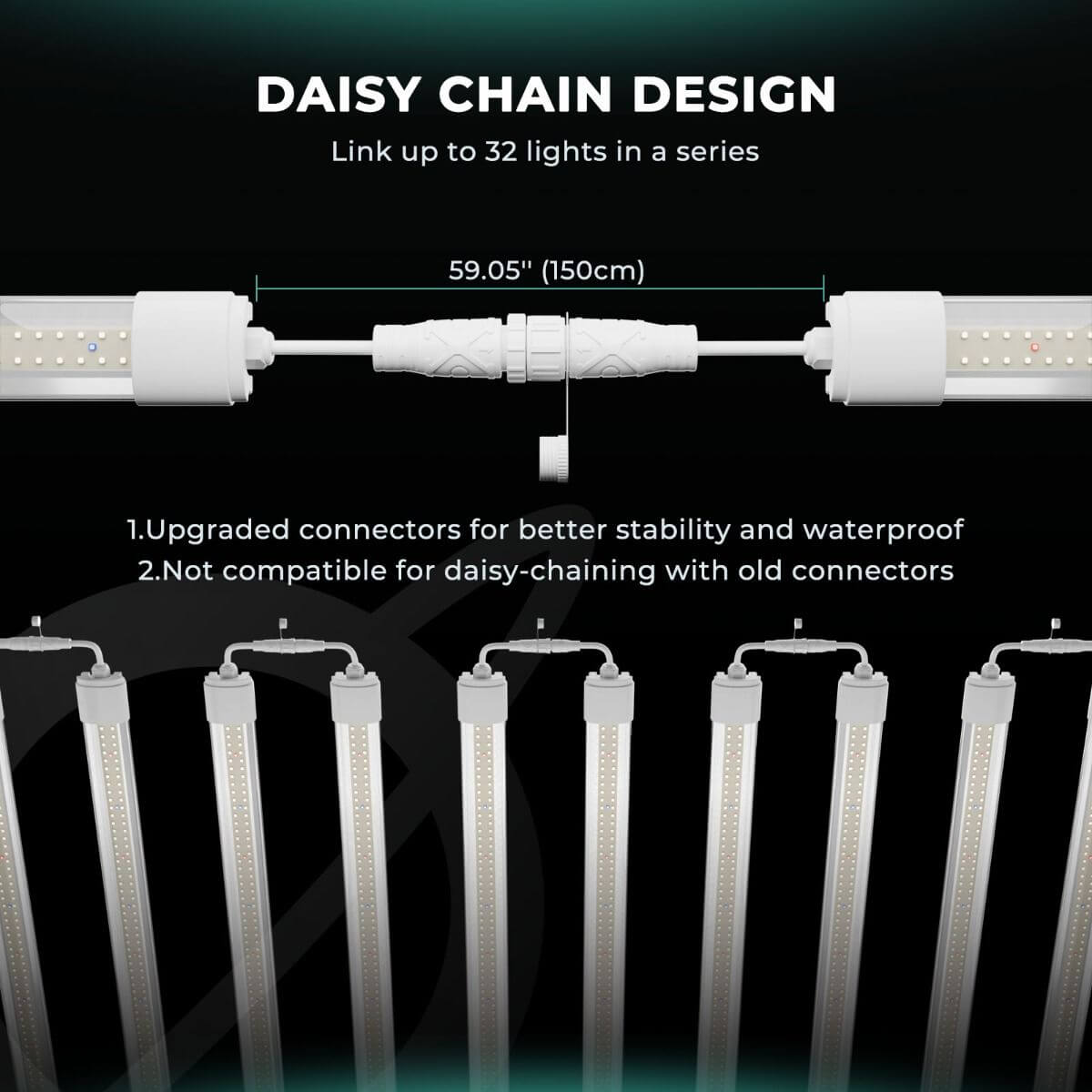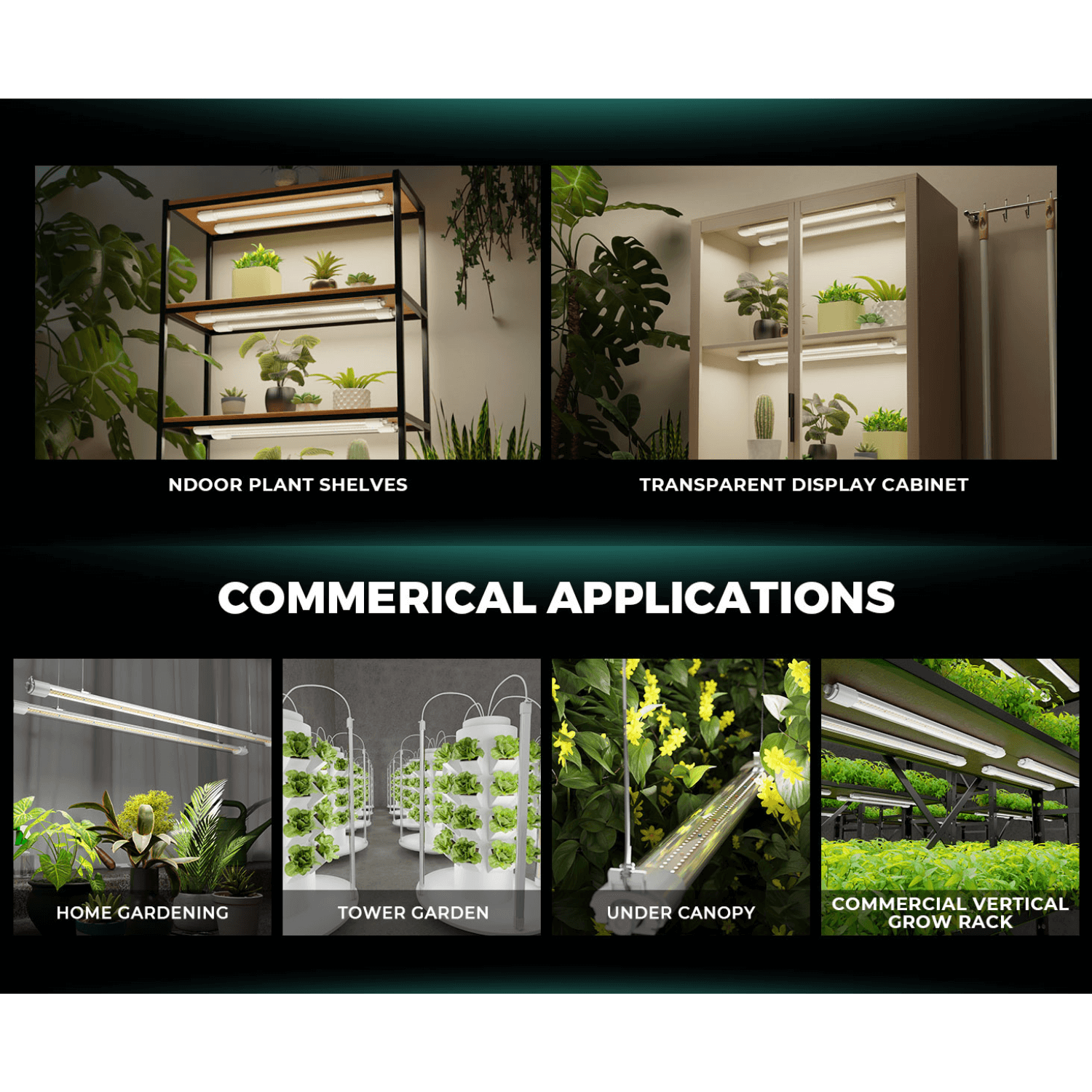 Capable of linking up to 32 units in a daisy chain, the VG40 is perfectly suited for commercial setups. Its versatility extends to various indoor planting systems including bottom, side, under-lighting, and top lighting, countering challenges such as slow plant growth and insufficient illumination for tall plants.