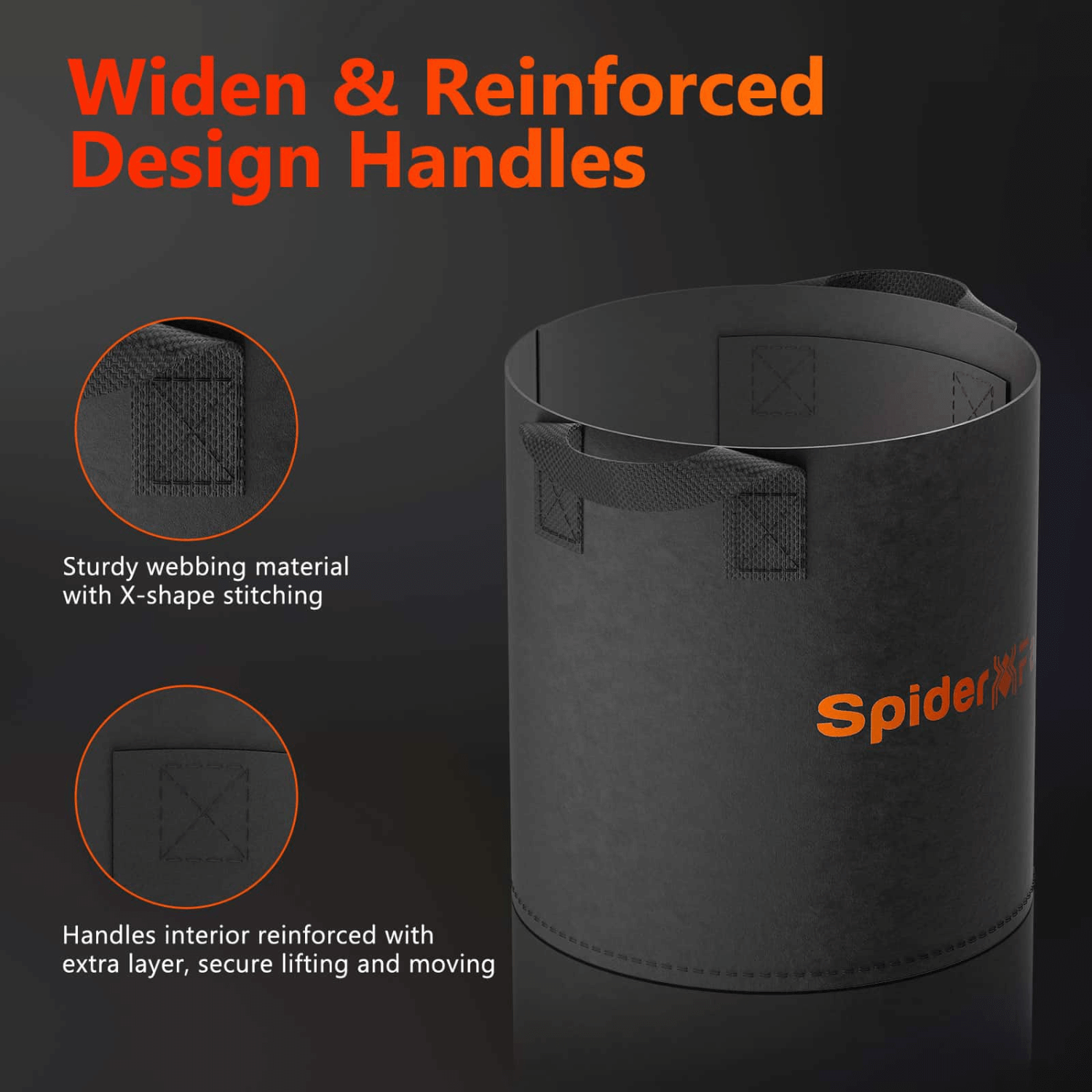 Spider Farmer 5 Gallon 300G Thickened Nonwoven Fabric Grow Bag with Handles - 5-Pack