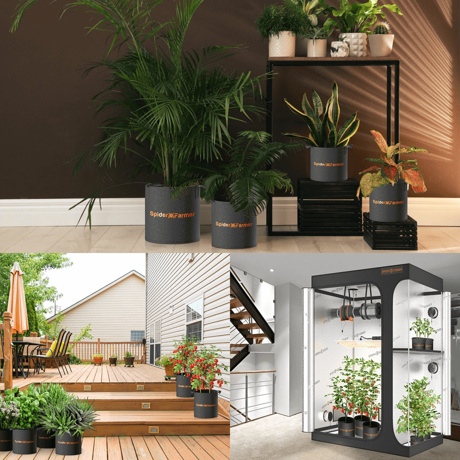 Spider Farmer grow bags are crafted from top-notch, durable, non-woven fabric that is both soft yet sturdy. This material is eco-friendly and long-lasting, and can be reused after a wash.