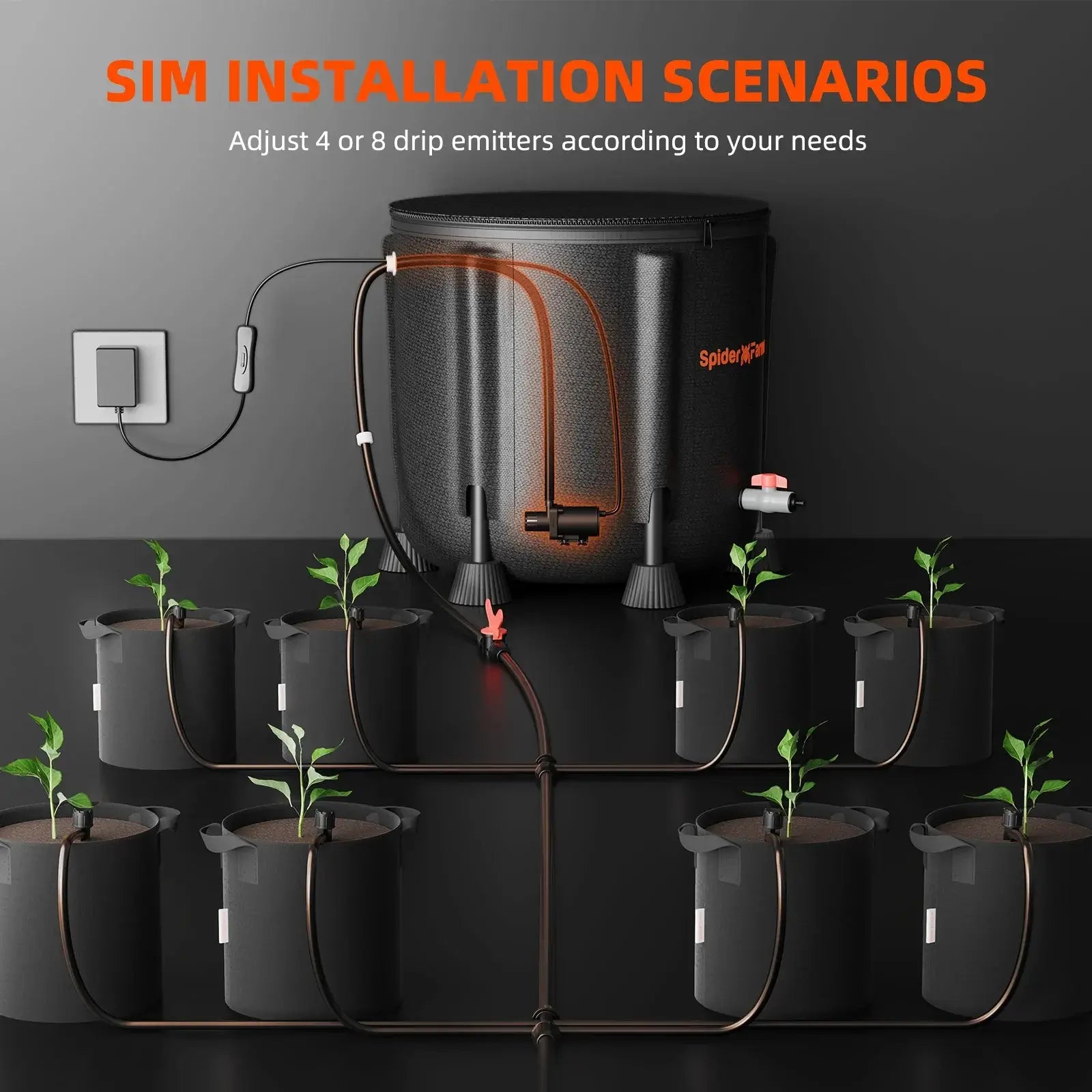 Spider Farmer Automatic Drip Irrigation System with Water Pump and 8 Drip Emitters