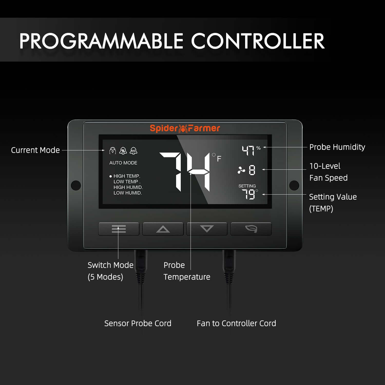 This controller offers various operation modes and 10 fan speeds. It is easy to program and automatically manages humidity and temperature with four straightforward settings.