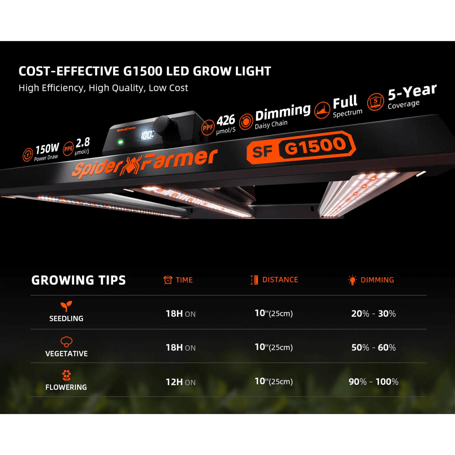 Spider Farmer G1500 150W Dimmable Full Spectrum LED Grow Light