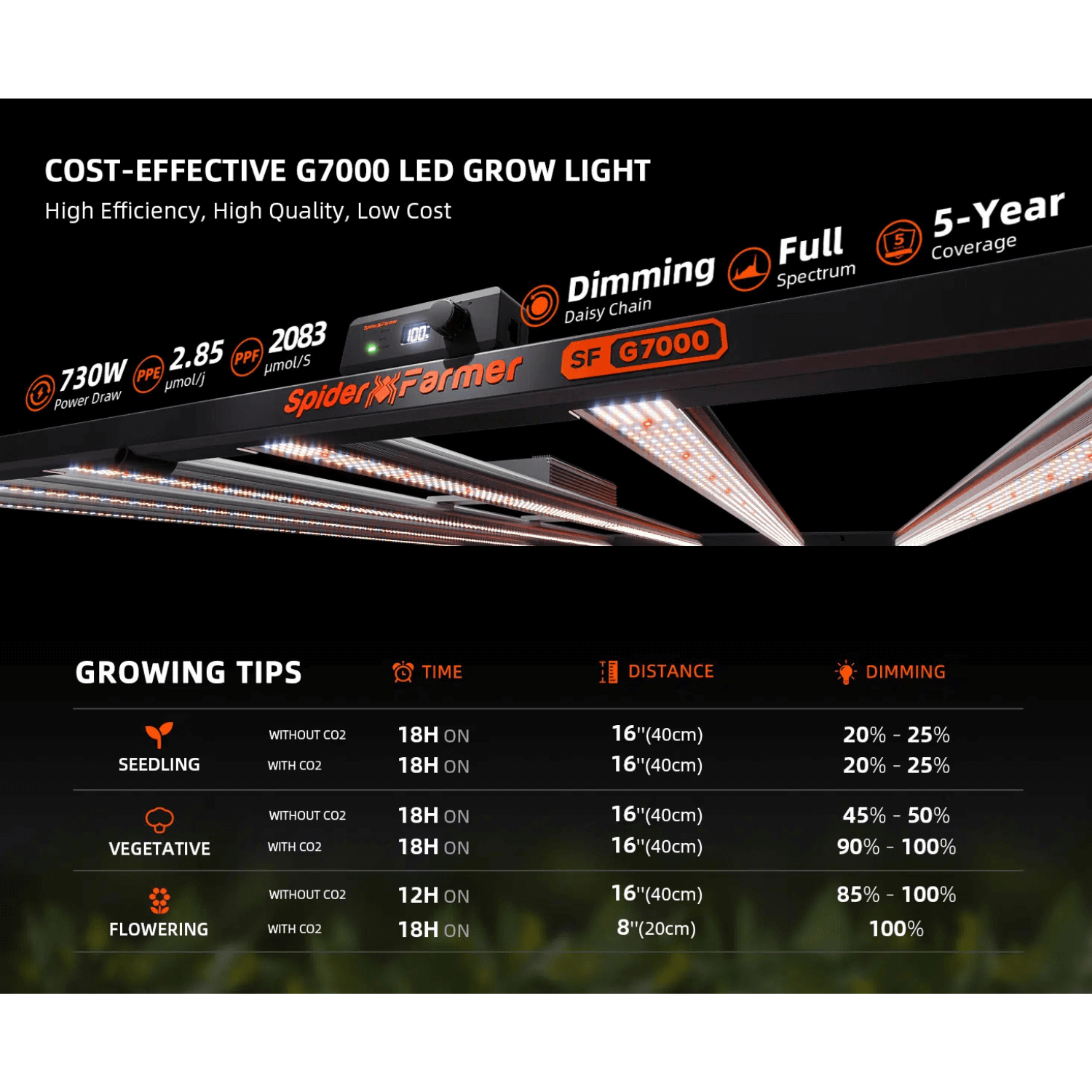 Spider Farmer G7000 730W Dimmable Full Spectrum LED Grow Light
