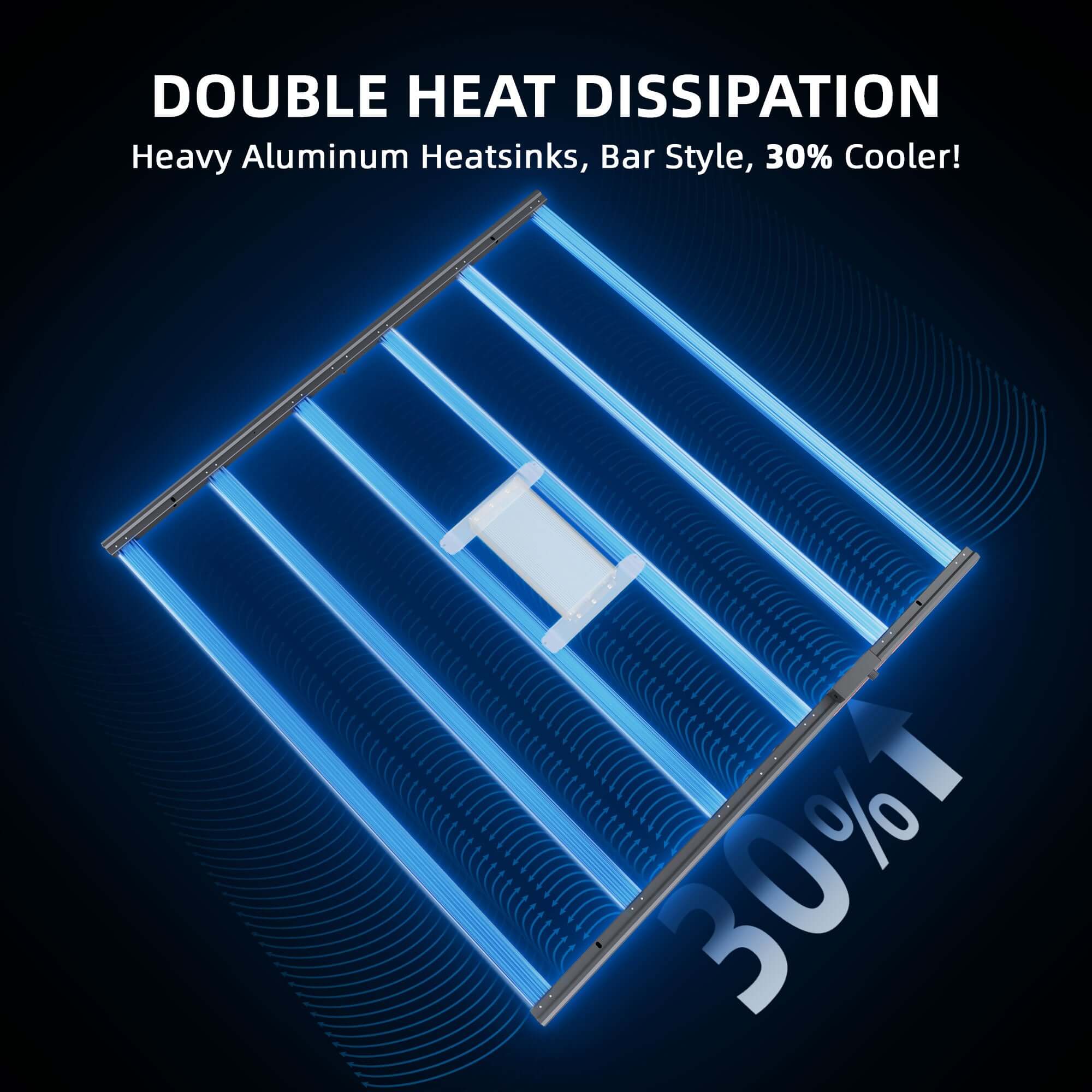 The bar-style design enables airflow between the bars, allowing for better heat dissipation as the LED's heat is spread over a larger surface area. This setup facilitates the addition of supplemental lights. The design also offers high efficiency – maximizing the benefits of your energy spend and has low heat output – helping you maintain easier temperature control.