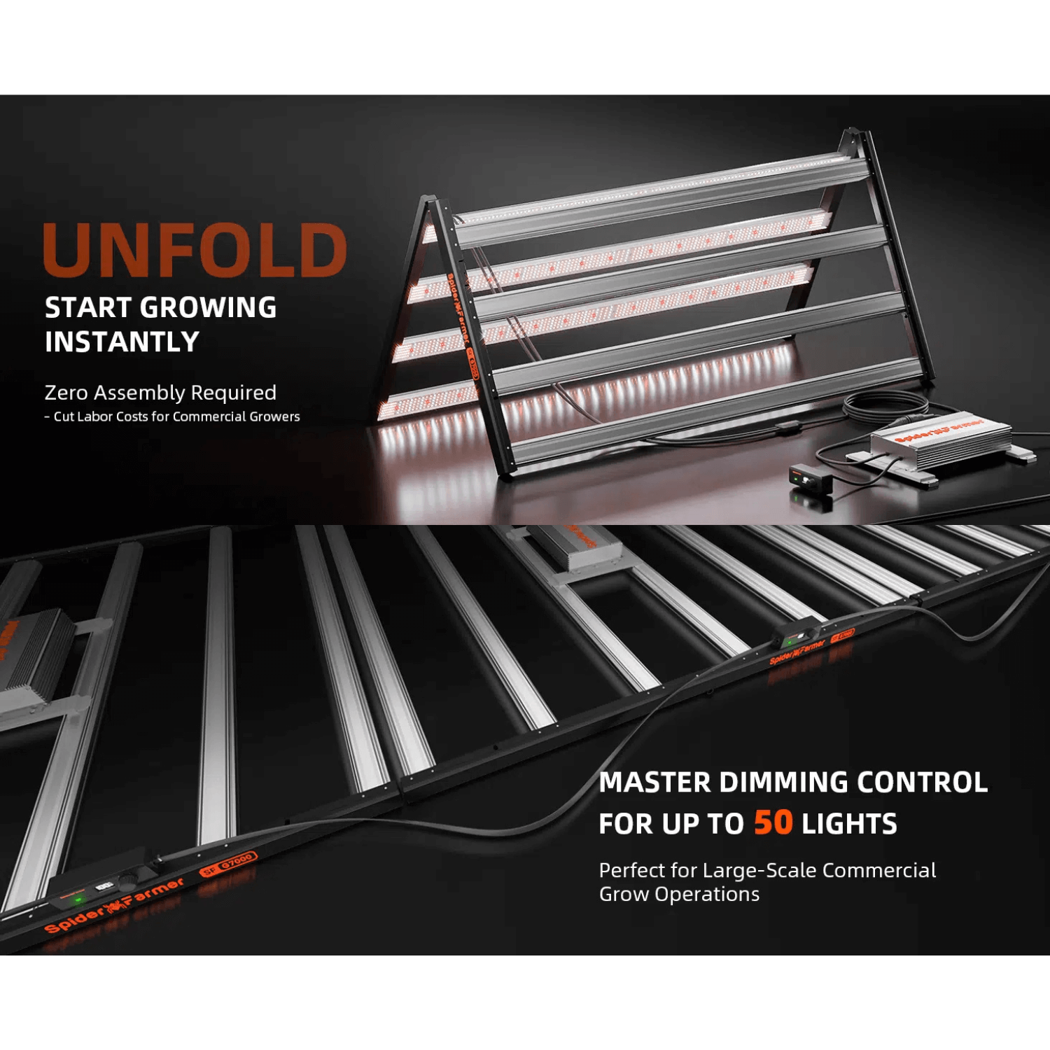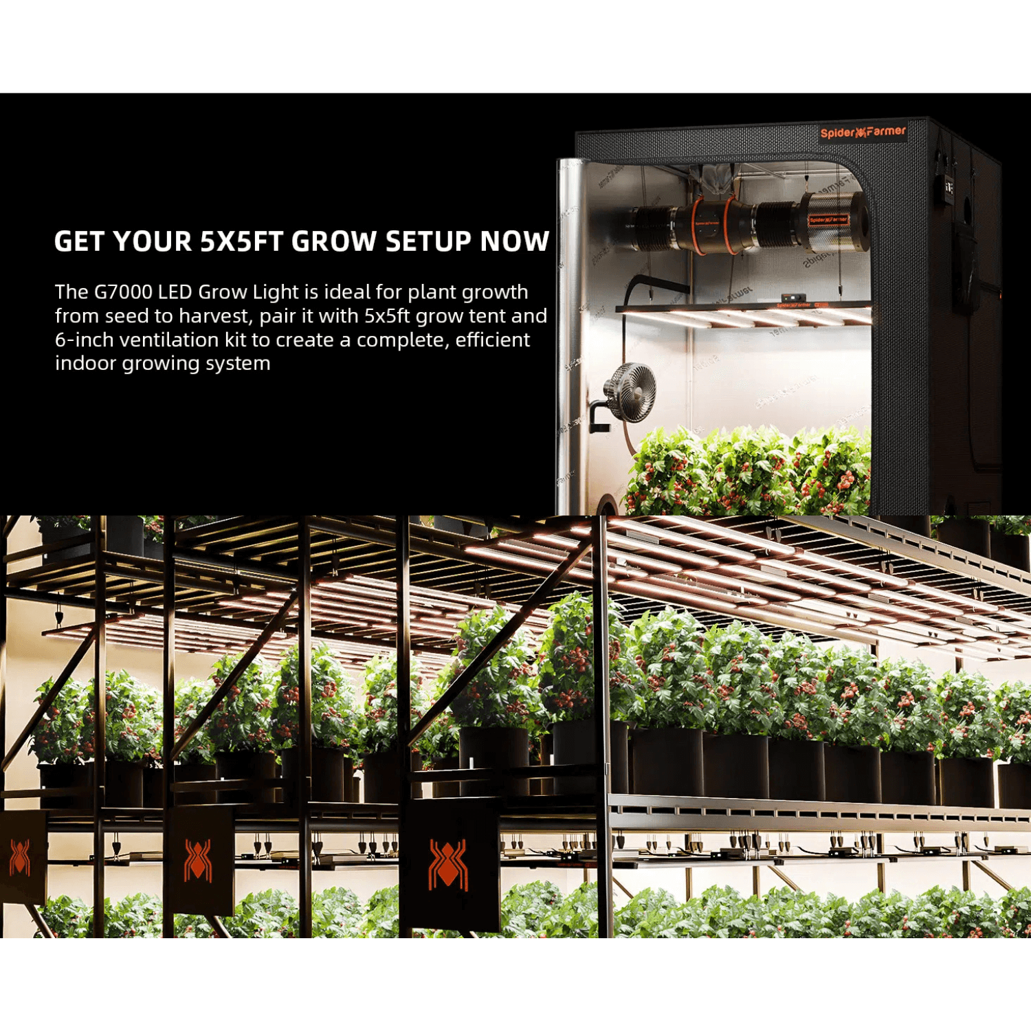 The bar-style design presents almost flawless light distribution and impressive results in a 4X4/ 5x5 growth space. The product comes with a 5-year warranty, providing long-term reliability for your peace of mind. It is also compatible with the Spider Farmer GGS Controller for even more advanced features and control.