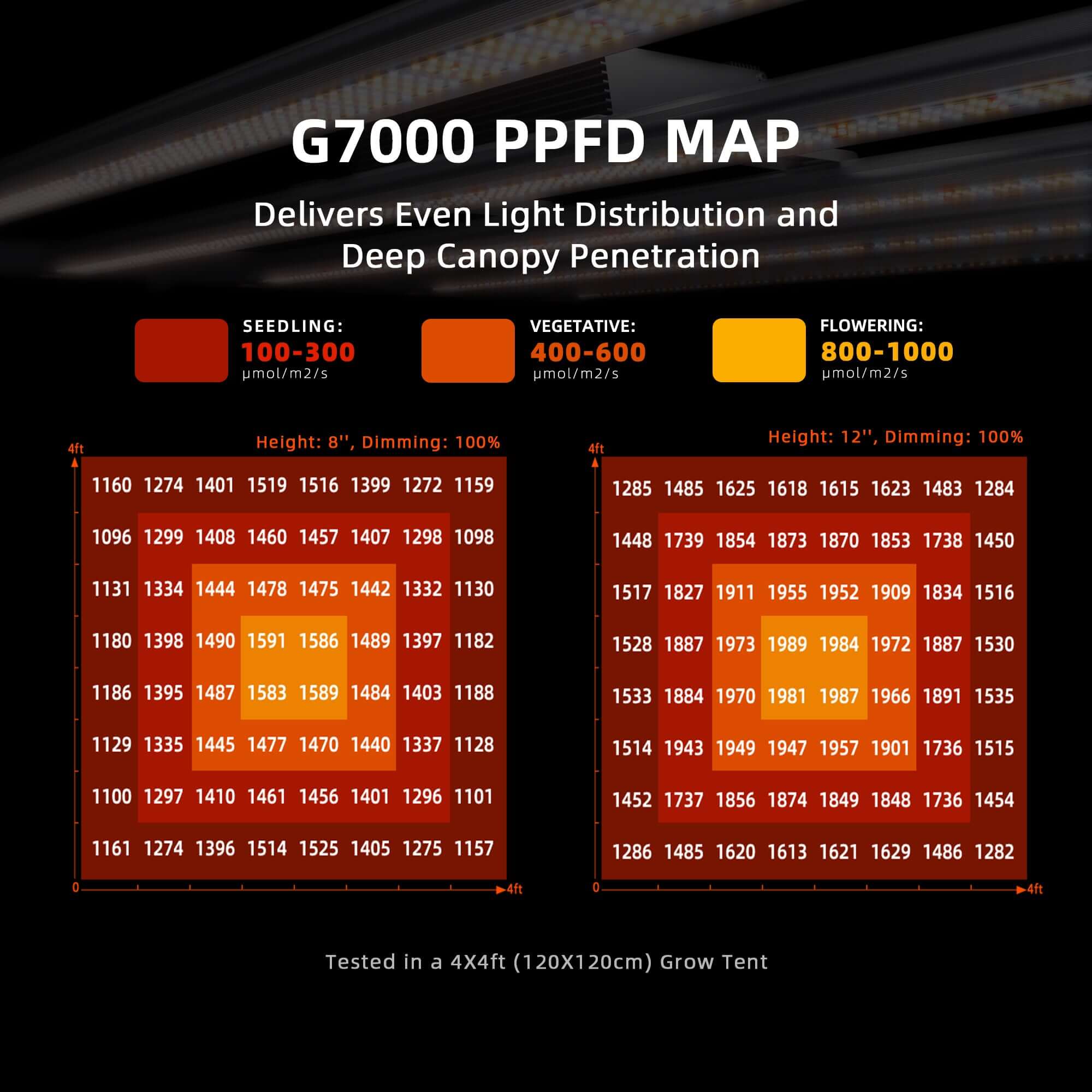 Our latest economy line, the G series utilizes diodes from the reputable American brand, Bridgelux. It boasts the highest density of LEDs in our range, ensuring excellent light penetration and even coverage. The high-density LEDs optimize energy use, generating less heat. With such a high number of diodes, each LED operates without reaching its limit. It’s the top choice for budget-conscious growers seeking high yields.