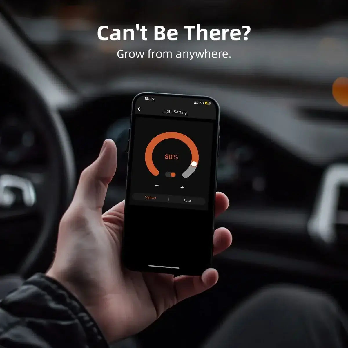 This device monitors temperature, humidity, and day/night cycles inside the grow tent, optimizing plant conditions. Note: The light sensor is located on the side and it is important that it remains unblocked for accurate measurements.