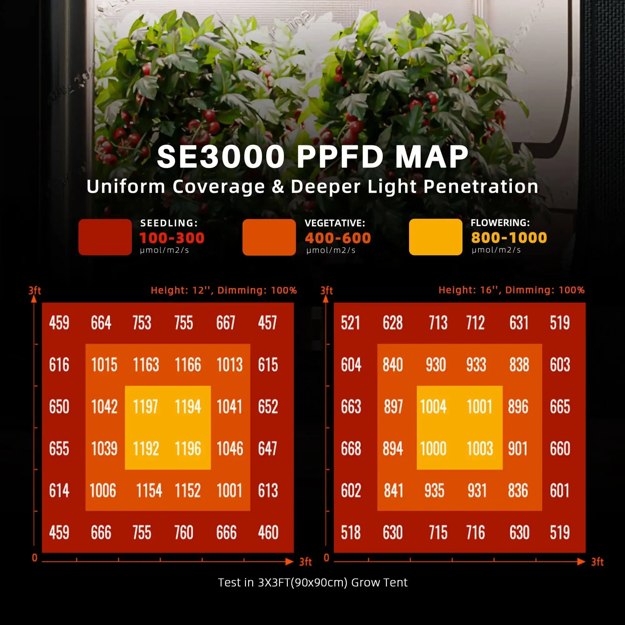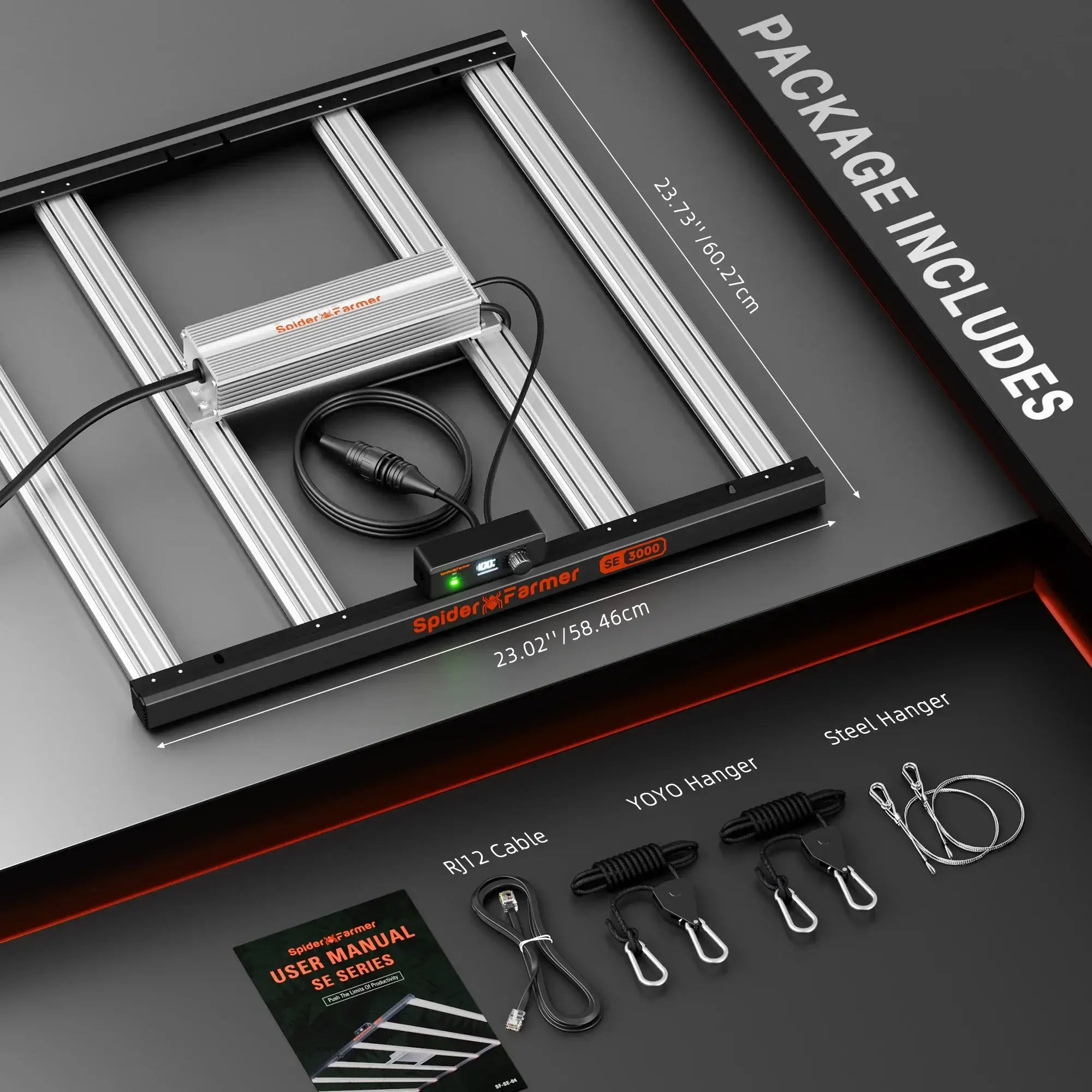 Spider Farmer SE3000 LED Grow Light + 3' x 3' Grow Tent + 4" Inline Fan Combo with GGS Controller Kits + 6" Clip Fan