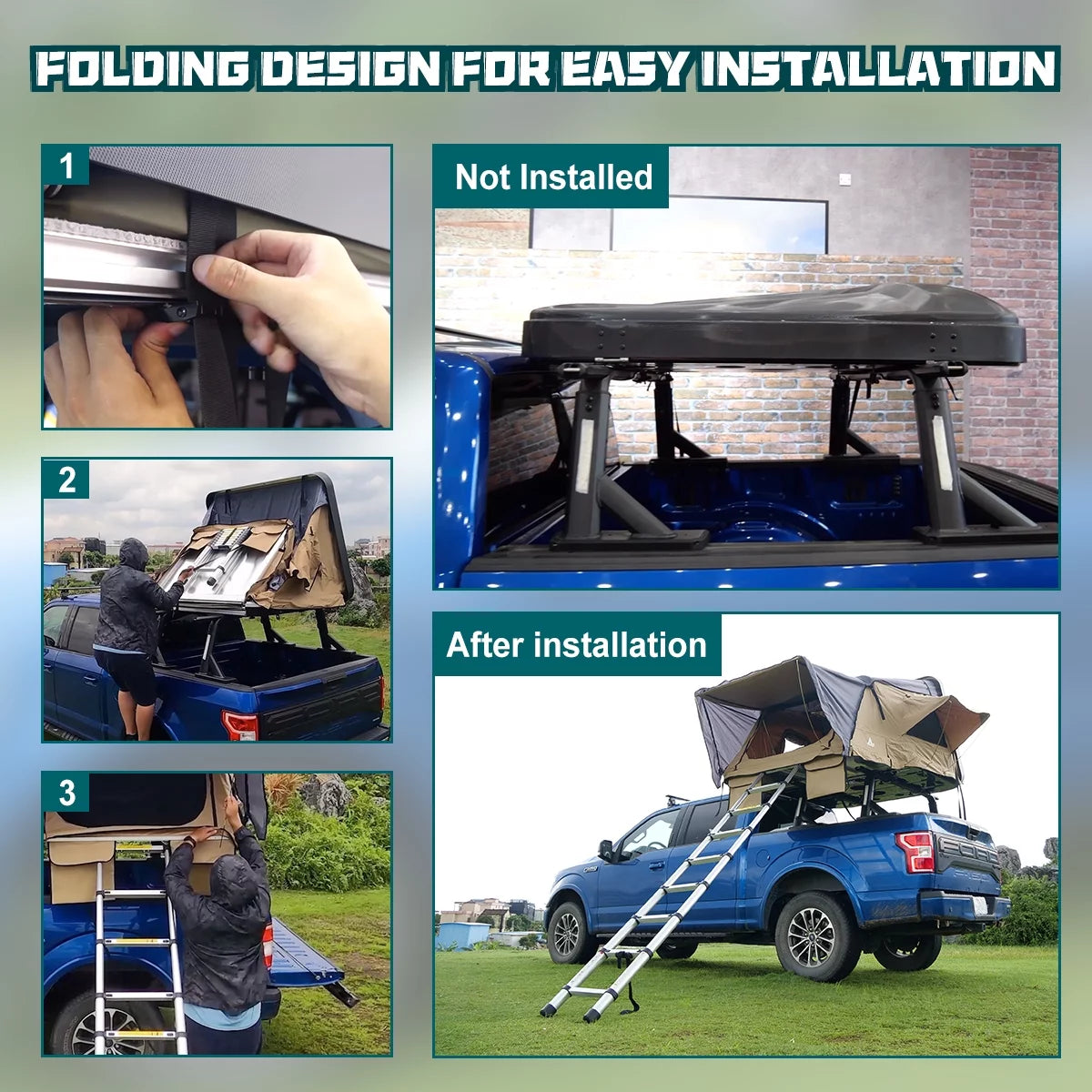 uD83CuDFAASafely Enter Camping Tentï¼The truck bed tent is consist of retractable ladder with buckles, each ladder heavy duty and the bottom of the ladder are non-slip, which is 7.5 Ft long and help you enter the full size truck tent safely and stably.