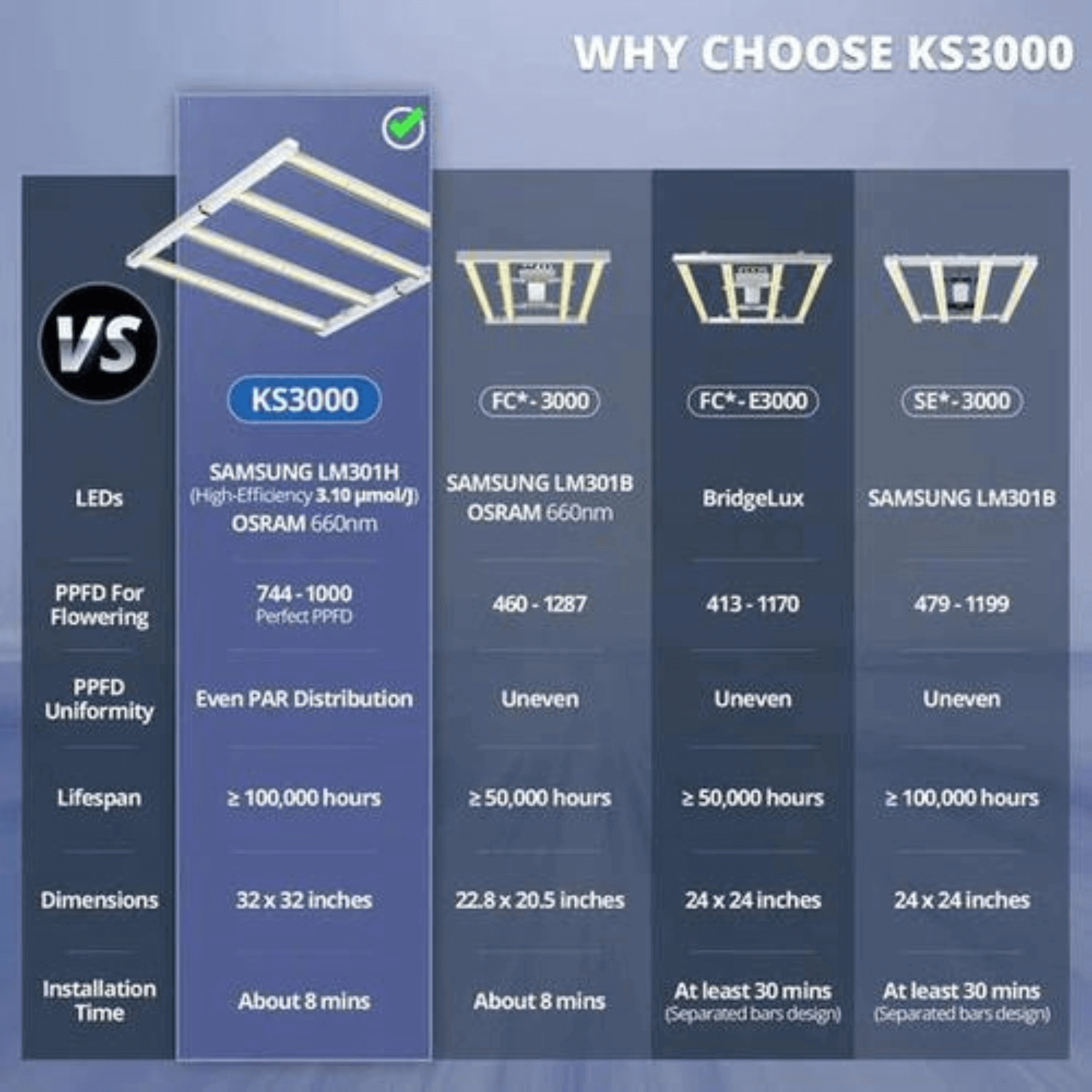 840pcs LEDs: Samsung LM301H 3000K-528pcs, 5000K-288pcs, Osram 660nm-24pcs