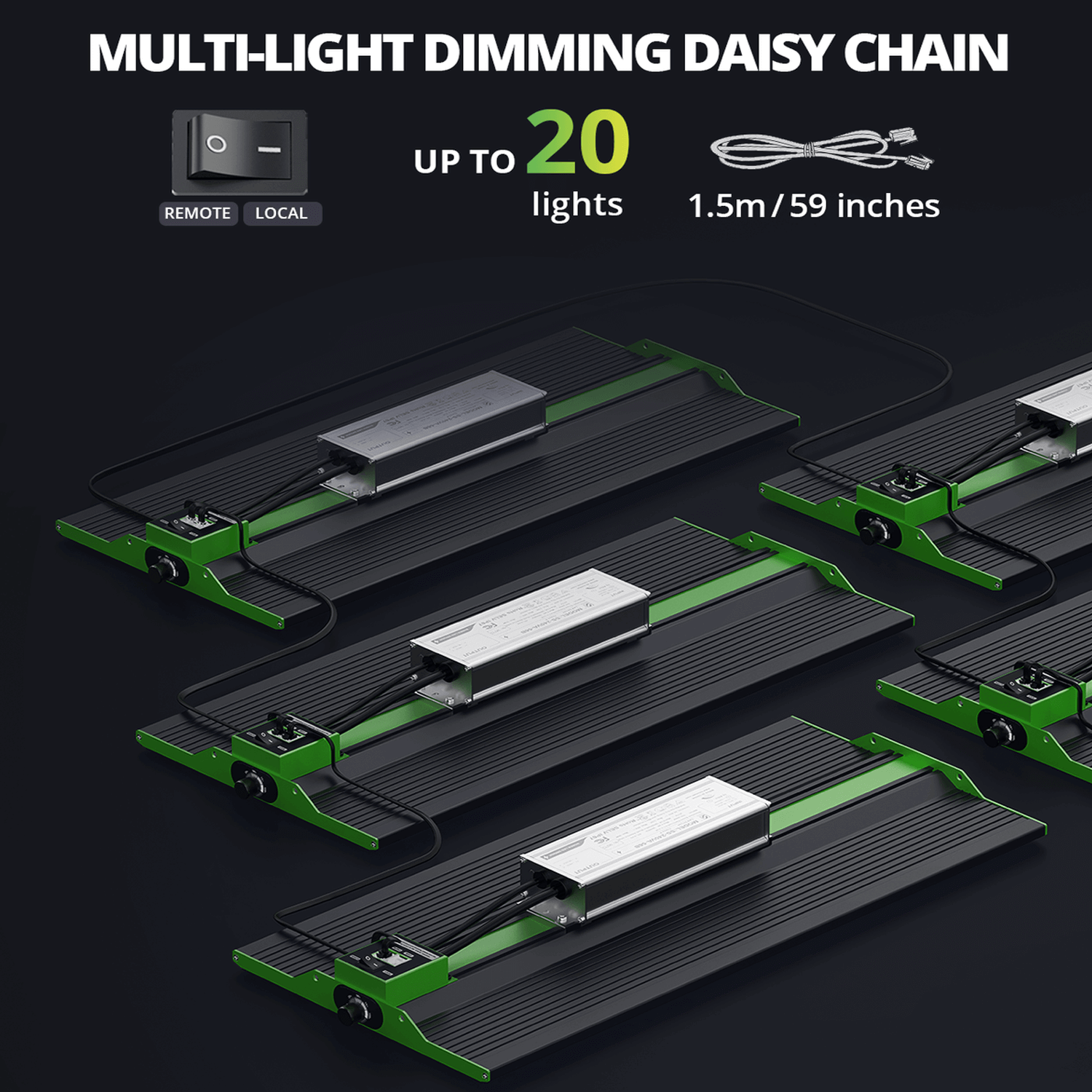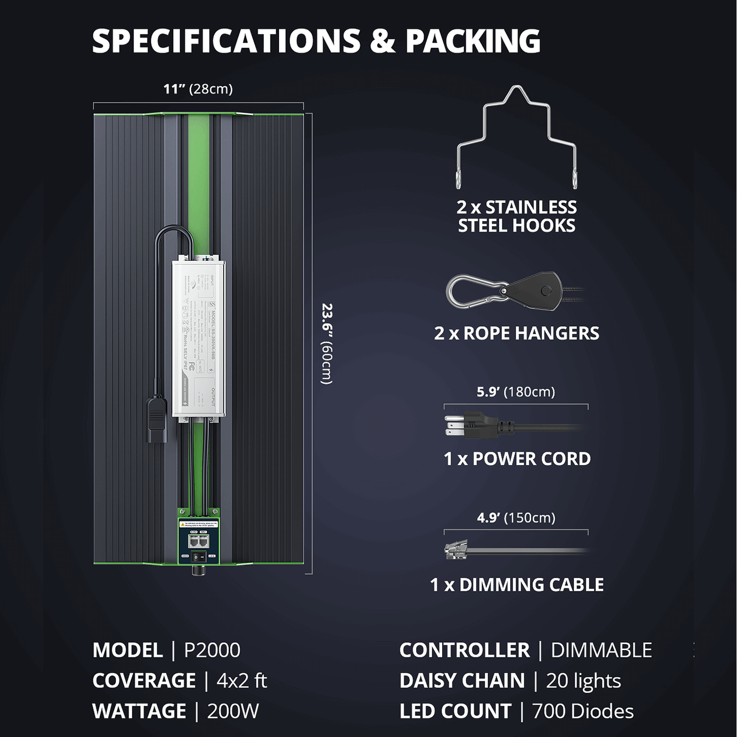This allows for the connection of up to 20 P2000 grow lights. Ideal for commercial growing, horizontal and vertical farming, greenhouse planting, and hydroponics.