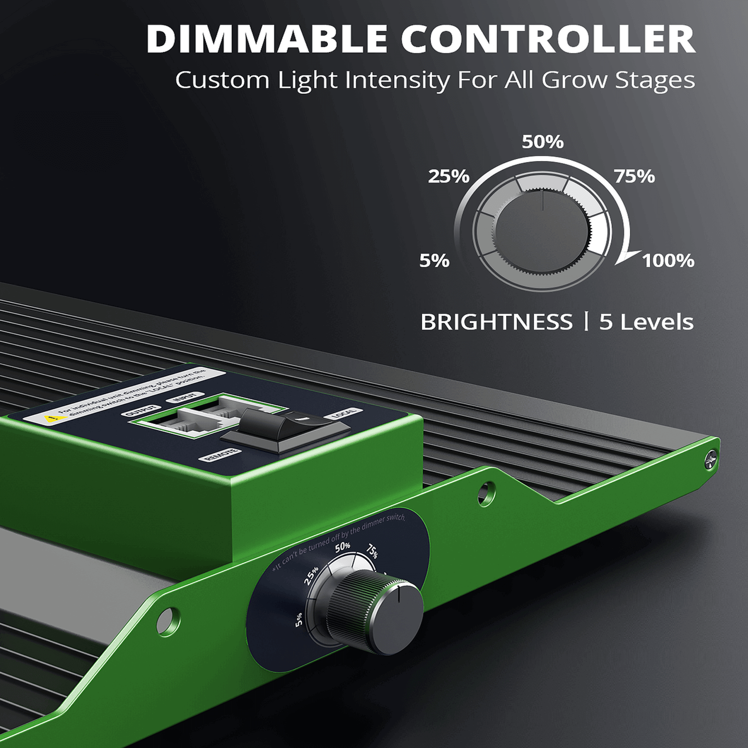 An included dimmer knob enables the adjustment of the brightness level of the light, providing flexibility to achieve the perfect growth performance for each growing phase.