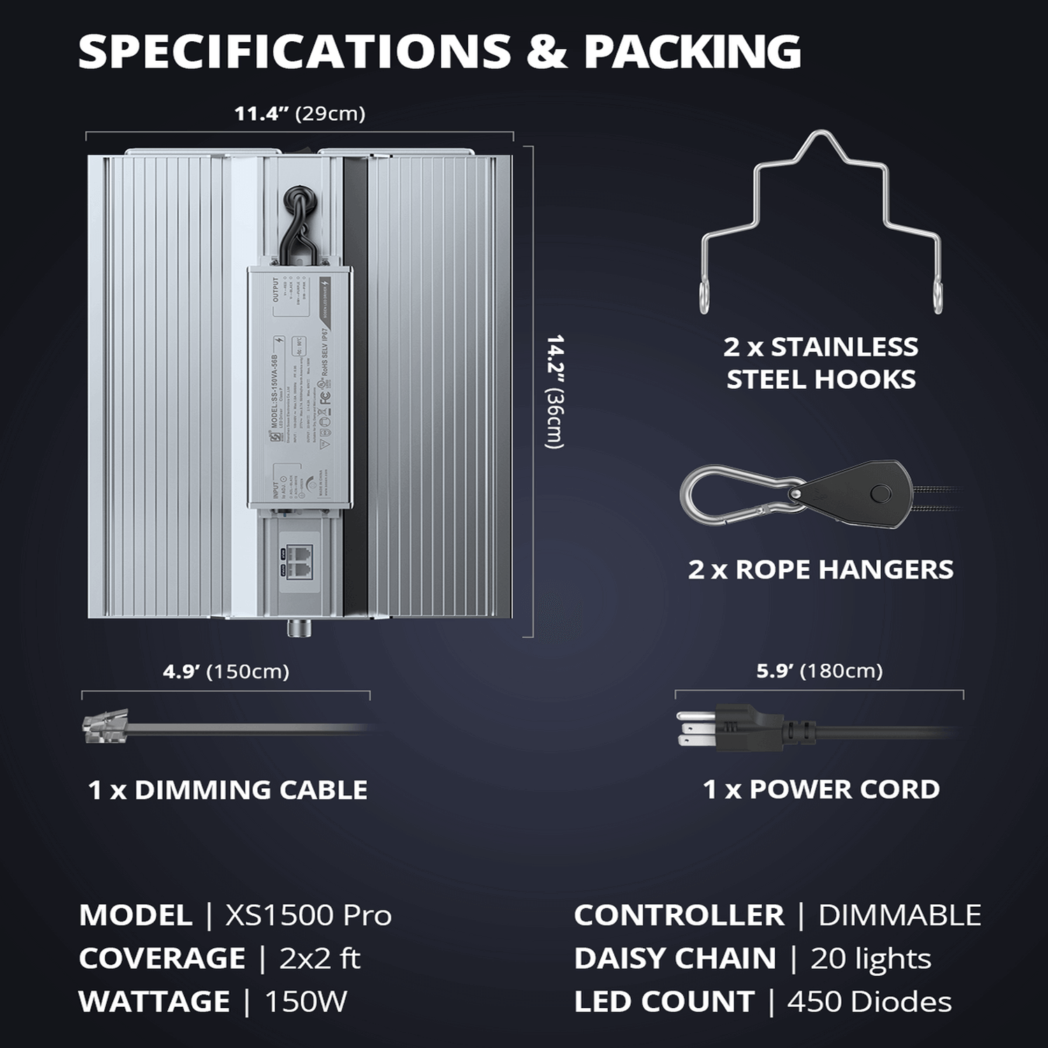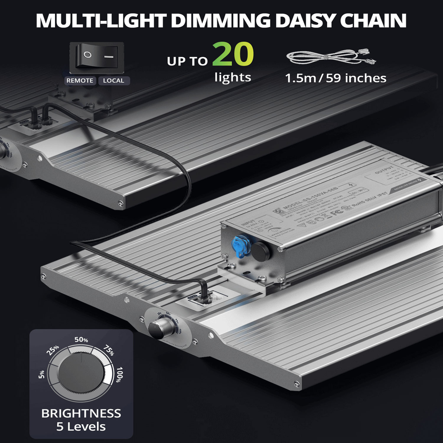 Allows you to connect up to 20 XS1500 Pro units for unified dimming. This feature is particularly useful for commercial growing, horizontal and vertical farming, greenhouse planting, and hydroponics, etc. The external dimmer offers the flexibility to adjust light levels to achieve ideal growth performance at all stages.